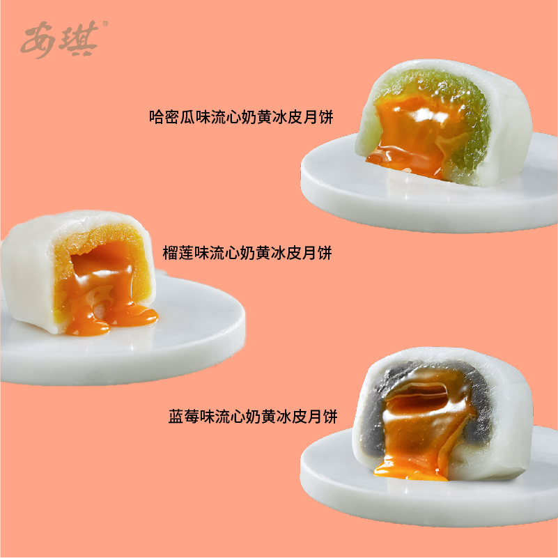 安琪流心奶黄冰皮月饼巧心臻制,清爽不腻,融合了传统与现代经典口感;内芯口感顺滑,清爽解腻,外表皮薄Q弹,让人一试难忘。安琪流心奶黄冰皮月饼以其独特的口感、丰富的口味和精美的包装,成为了今年中秋节的一大亮点。无论你是喜欢传统的奶黄味,还是喜欢新颖的榴莲味、蓝莓味、哈密瓜味,都能在这款月饼中找到满意的选择。针对常温冰皮存在的问题,安琪进行了长时间的研究开发,通过调整原料的类型和配比,同时采用创新的保鲜方式,使月饼的各项指标达到常温保存的要求,解决了冰皮月饼只能在冷链贮存和销售的问题。