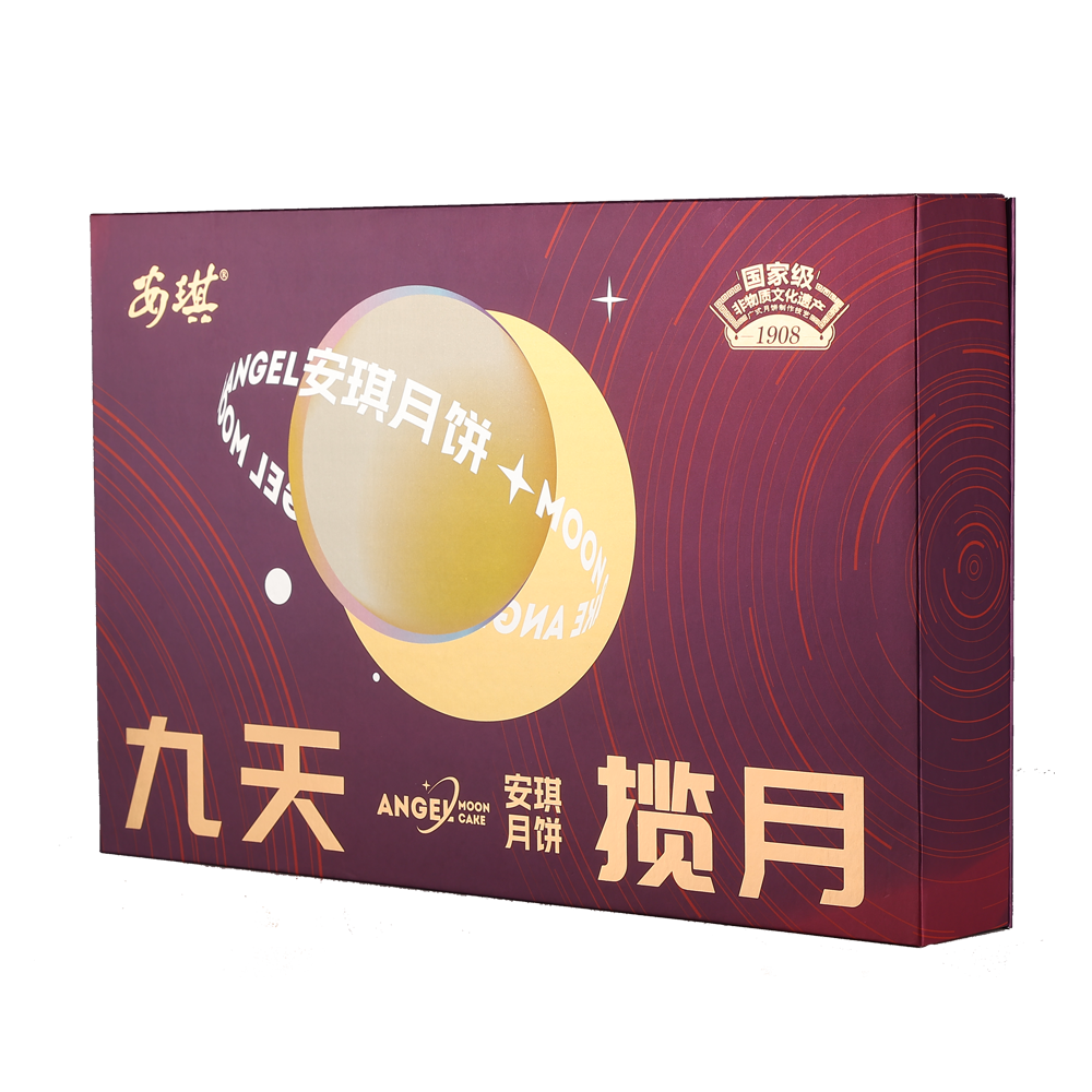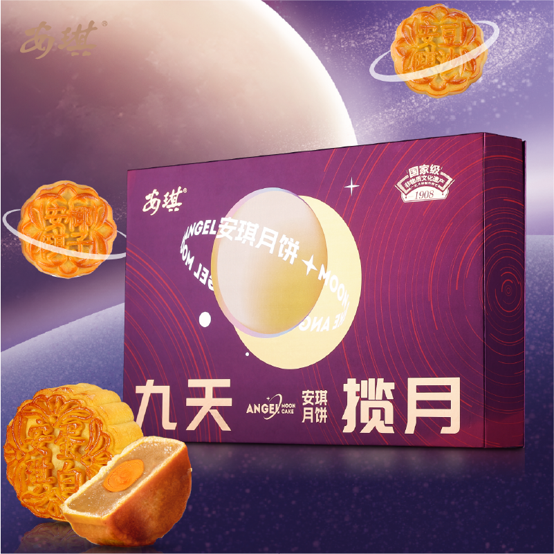 安琪九天揽月月饼,以中秋和宇宙为灵感,将月亮、星球和安琪品牌探月历程融合于包装设计中。我们以中秋月亮为中心主体,象征着团圆和美好的寓意。在月亮的上方,巧妙融入星球的元素。这既传承了中秋的文化传统,又通过创意的设计方式注入现代感。安琪“九天揽月”不仅是一个产品名称,更是对安琪过去十年在月饼领域的探索的有力呼应。它倡导的是一种积极向上的生活态度,鼓励年轻人勇敢追梦,敢于挑战自我。这种精神也得到了年轻人的广泛认同和支持。