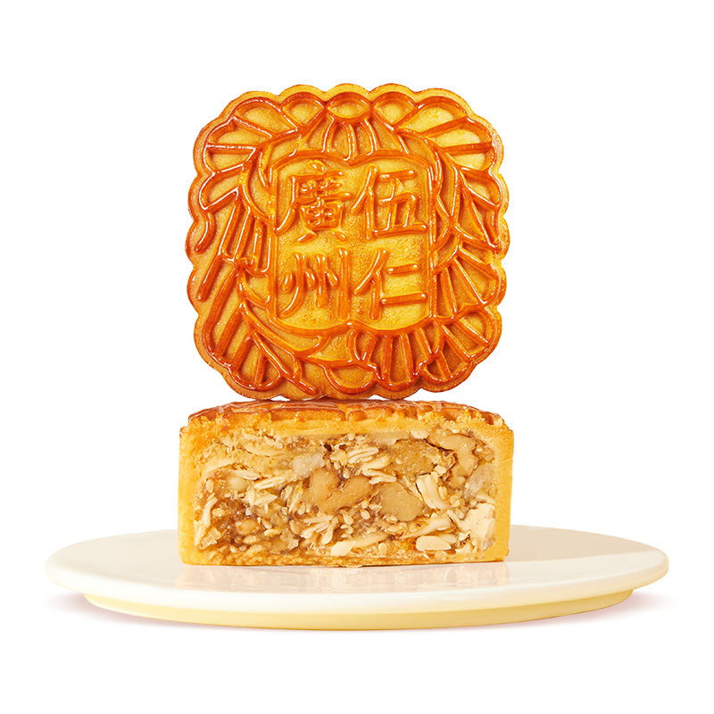 广州酒家五仁月饼是由橄榄仁、核桃仁、杏仁、芝麻仁及瓜子仁齐聚一堂,品一口,满嘴留香,甜咸相宜的中秋滋味。净含量720g,五仁月饼 180g×4块