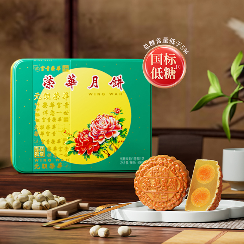元朗荣华低糖双黄白莲蓉月饼 精准把控,总含糖量低于5%,健康无负担。内配低糖双黄白莲蓉月饼150g×4枚。饼皮色泽金黄松软匀薄顺滑软糯甘香,由元朗荣华自建湖南“寸三莲”基地,精选浑圆饱满的莲子经过多次研磨、过筛、炒制等多重工艺莲香四溢,口感粉糯松软,与咸蛋黄相呼应!白莲蓉馅料(莲子添加量100%)清香怡人口感紧实、细腻柔滑纯香白莲蓉。慢火熬煮出的细腻莲蓉配上口感松软的饱满流油咸香丰盈的咸鸭蛋黄,给予味蕾中秋的滋味。元朗荣华经典牡丹印花铁盒寓意花好月圆富贵荣华,中秋佳礼,馈赠珍选!中秋送月饼、企业集采团购批发-送货上门、灵活开票!